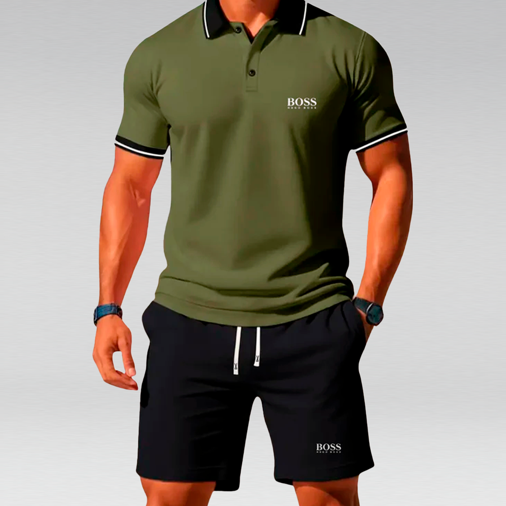 Aporta un nuevo estilo a tu día a día con el Classic Contrast Set, donde el diseño elegante se encuentra con la comodidad casual. Este conjunto cuidadosamente diseñado incluye un polo elegante con detalles de contraste llamativos y unos shorts con cordón a juego, que completan el look con un toque de estilo discreto.